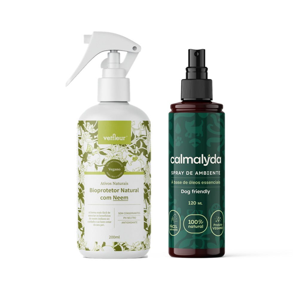 O Kit Bioprotetor Natural com Neem + Spray Calmalyda reúne dois produtos complementares para quem busca uma rotina de cuidado natural, proteção ambiental e bem-estar para cães. De um lado, o Bioprotetor Natural com Neem, com ativos botânicos e proposta vegana. Do outro, o Spray Calmalyda para ambiente, formulado com óleos essenciais para apoiar momentos de adaptação e tranquilidade.