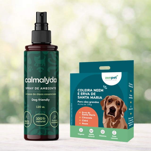 ► Kit com 1 coleira aromática natural + 1 spray Calmalyda para uso no ambiente