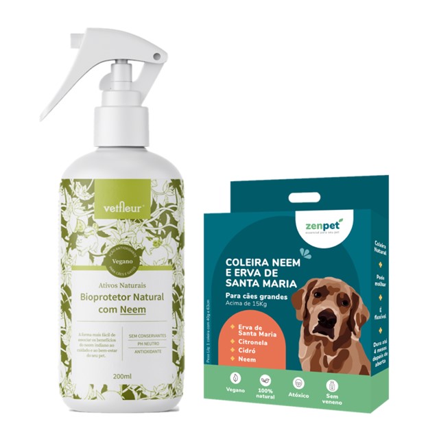 O kit cria uma barreira de proteção natural contra pulgas, carrapatos e mosquitos, ajudando a reduzir o contato com parasitas e protegendo o pet no dia a dia. O uso do neem para cães e gatos contribui para repelência natural sem agressividade.