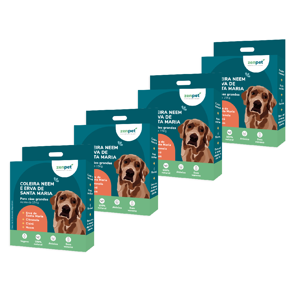 Kit 4 Coleira Natural Neem e Erva Santa Maria Cães Grandes Zenpet