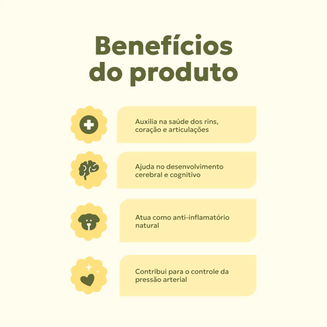 Estes são termos comuns utilizados em buscas por suplementos naturais para pets, facilitando a localização do produto em pesquisas online.